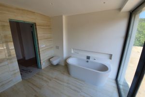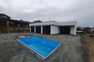 Moderní stavba rozlehlé vily na krásném místě s výhledem na místní hrad. Dominantou domu jsou velké prosklené plochy a čistý minimalistický design.