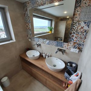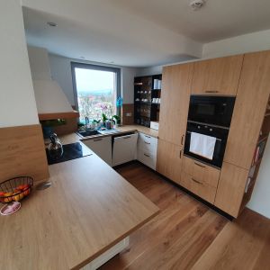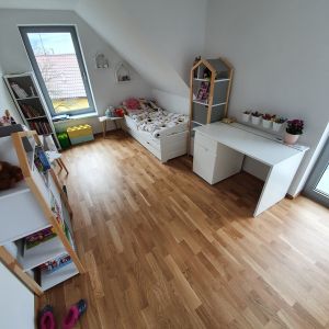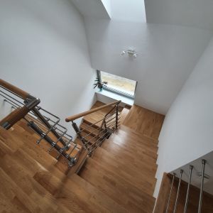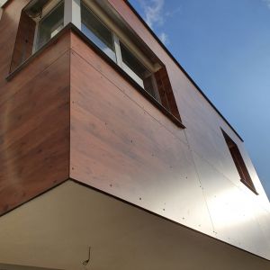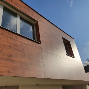 Moderní rodinný dům s krásným výhledem. Střecha je tvořena falcovaným plechem. Fasáda je tvořena zavěšeným obkladem značky FUNDERMAX v dokonalém dekoru. Vnitřní podlahy tvoří dřevěné podlahy. Dominantou domu jsou perfektně vyladěné kombinace obkladů v koupelnách.