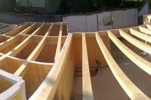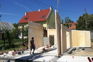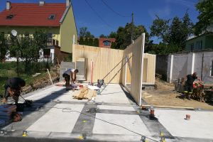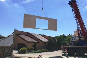 Dům je tvořen systémem nosných stěn DEKPANEL. Celá realizace hrubé stavby trvala pouhých 18 hodin. V interiéru jsou přiznány lepené stropní nosníky které dotváří ráz interiéru.