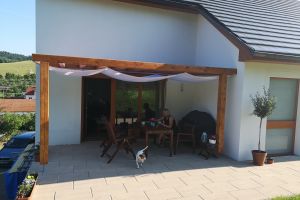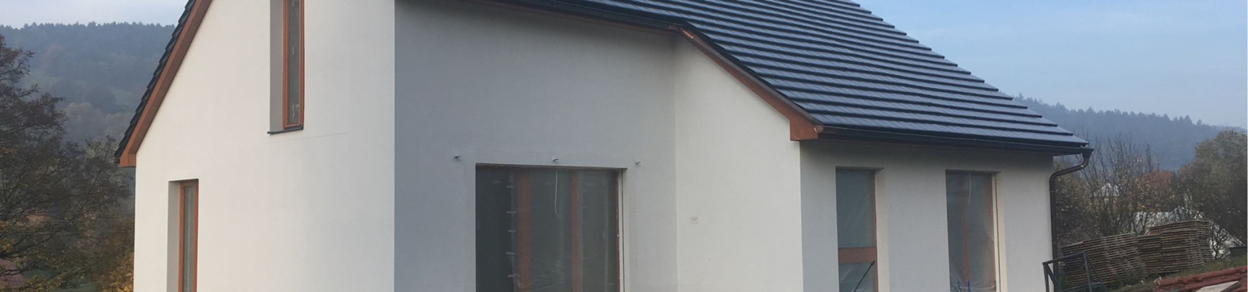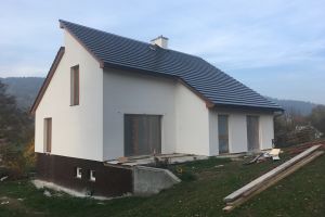 Rodinný dům blízko lesa. Stavba splňuje nejmodernější trendy současnosti i přes jeho klasický vzhled. Jsou zde použity nejmodernější materiály a současně je perfektně osazen do svahu a spojen tak z přírodou.